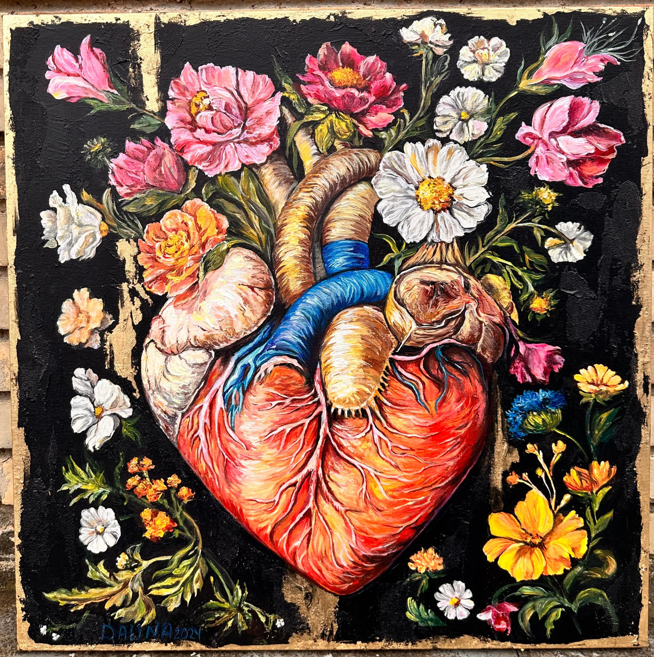 “O Coração que Floresce” – Pintura Original de Alina Dalinina. 60 cm x 60 cm.
